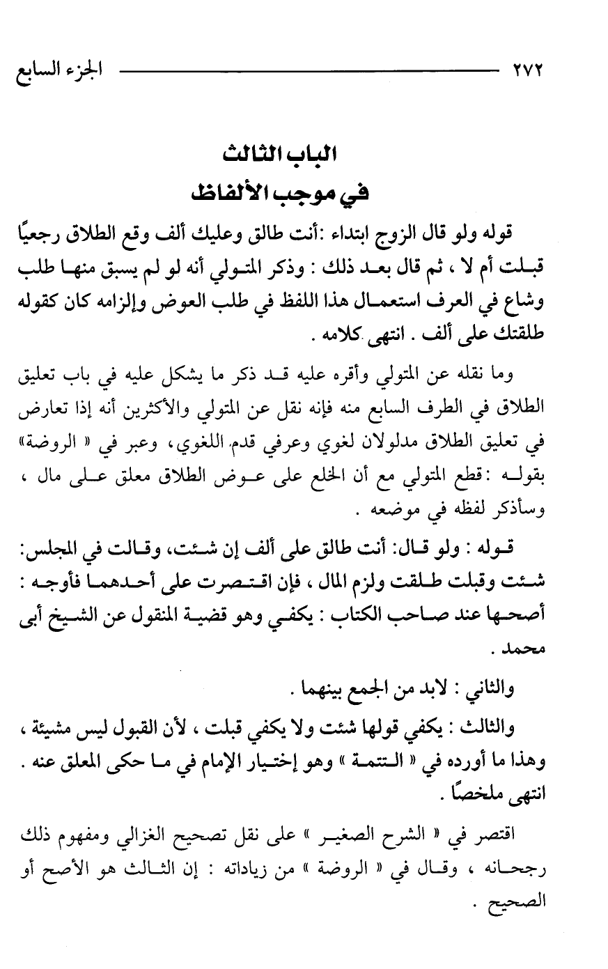 وما نقله عن المتولي وأقره عليه قد ذكر ما يشكل عليه في باب تعليق الطلاق في الطرف السابع منه فإنه نقل عن المتولي والأكثرين أنه إذا تعارض في تعليق الطلاق مدلولان لغوي وعرفي قدم اللغوي، وعبر في "الروضة" بقوله: قطع المتولي مع أن الخلع على عوض الطلاق معلق على مال، وسأذكر لفظه في موضعه.