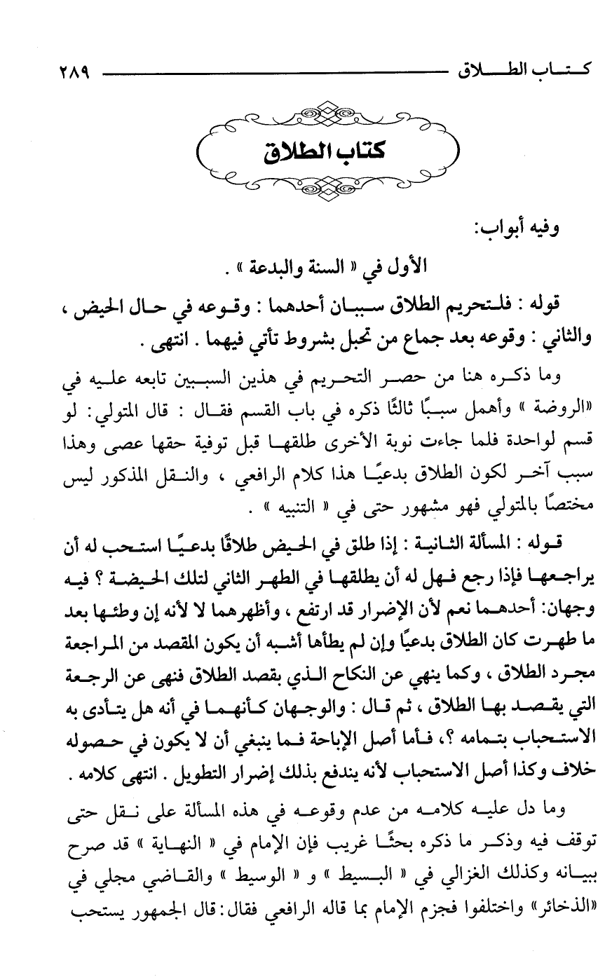 قوله: المسألة الثانية: إذا طلق في الحيض طلاقًا بدعيًا استحب له أن يراجعها فإذا رجع فهل له أن يطلقها في الطهر الثاني لتلك الحيضة؟ فيه وجهان: أحدهما نعم لأن الإضرار قد ارتفع، وأظهرهما لا لأنه إن وطئها بعد ما طهرت كان الطلاق بدعيًا وإن لم يطأها أشبه أن يكون المقصد من المراجعة مجرد الطلاق، وكما ينهي عن النكاح الذي بقصد الطلاق فنهى عن الرجعة التي يقصد بها الطلاق، ثم قال: والوجهان كأنهما في أنه هل يتأدى به الاستحباب بتمامه؟ ، فأما أصل الإباحة فما ينبغي أن لا يكون في حصوله خلاف وكذا أصل الاستحباب لأنه يندفع بذلك إضرار التطويل. انتهى كلامه.