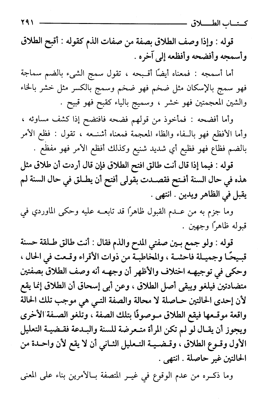 قوله: وإذا وصف الطلاق بصفة من صفات الذم كقوله: أقبح الطلاق وأسمجه وأفضحه وأفظعه إلى آخره.