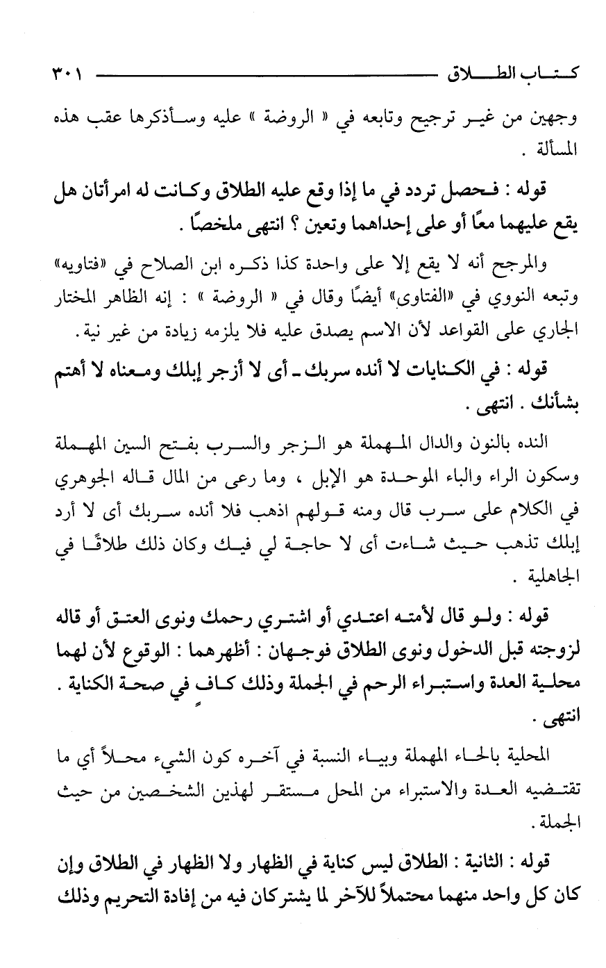 قوله: ولو قال لأمته اعتدي أو اشترى رحمك ونوى العتق أو قاله لزوجته قبل الدخول ونوى الطلاق فوجهان: أظهرهما: الوقوع لأن لهما محلية العدة واستبراء الرحم في الجملة وذلك كافٍ في صحة الكناية. انتهى.