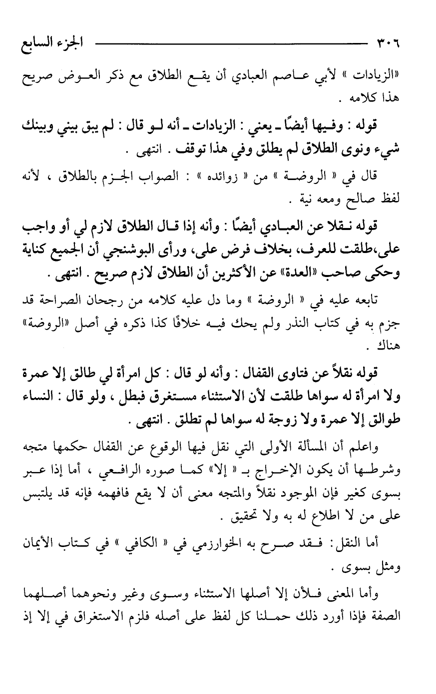 واعلم أن المسألة الأولى التي نقل فيها الوقوع عن القفال حكمها متجه وشرطها أن يكون الإخراج بـ"إلا" كما صوره الرافعي، أما إذا عبر بسوى كغير فإن الموجود نقلًا والمتجه معنى أن لا يقع فافهمه فإنه قد يلتبس على من لا اطلاع له به ولا تحقيق.
