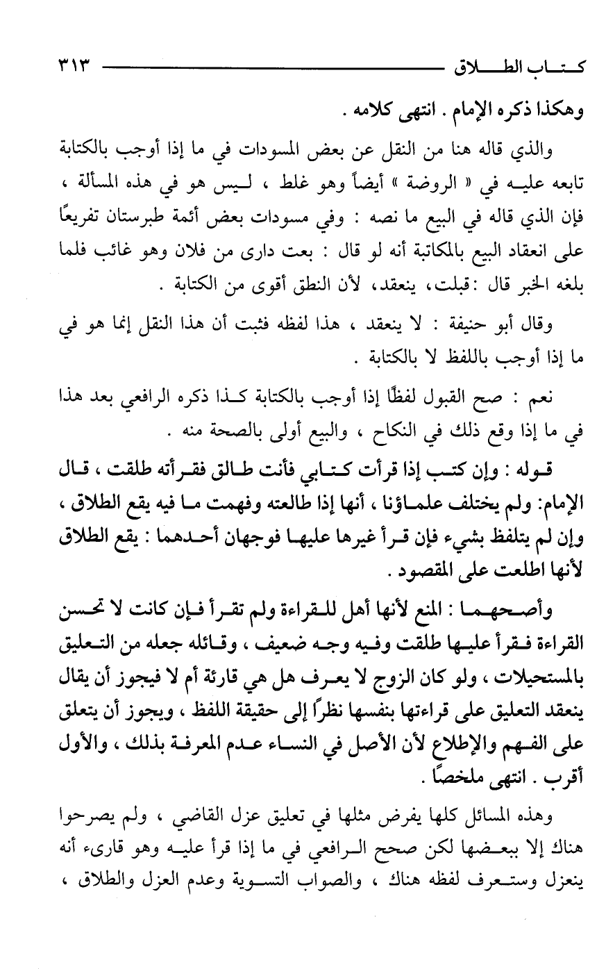 قوله: وإن كتب إذا قرأت كتابي فأنت طالق فقرأته طلقت، قال الإمام: ولم يختلف علماؤنا، أنها إذا طالعته وفهمت ما فيه يقع الطلاق، وإن لم يتلفظ بشيء فإن قرأ غيرها عليها فوجهان أحدهما: يقع الطلاق لأنها اطلعت على المقصود.