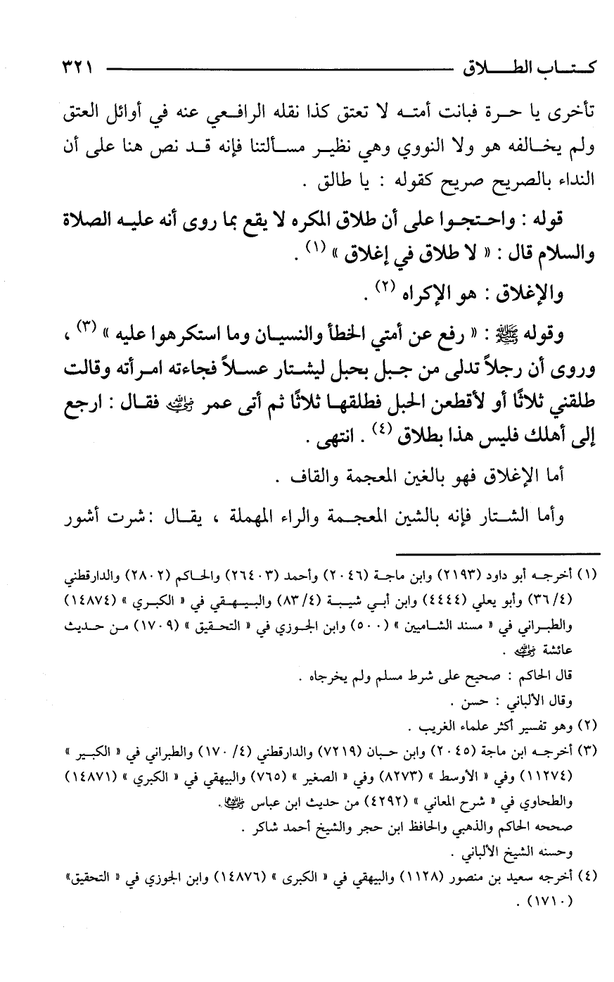 قوله: واحتجوا على أن طلاق المكره لا يقع بما روى أنه -عليه الصلاة والسلام- قال: "لا طلاق في إغلاق" (¬1).