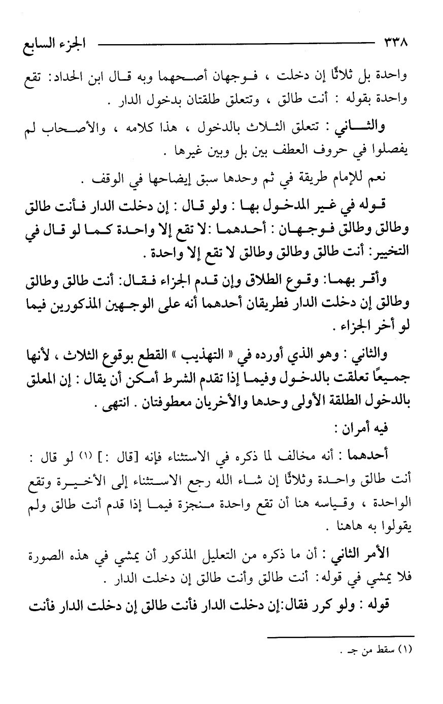 والثاني: تتعلق الثلاث بالدخول، هذا كلامه، والأصحاب لم يفصلوا في حروف العطف بين بل وبين غيرها.