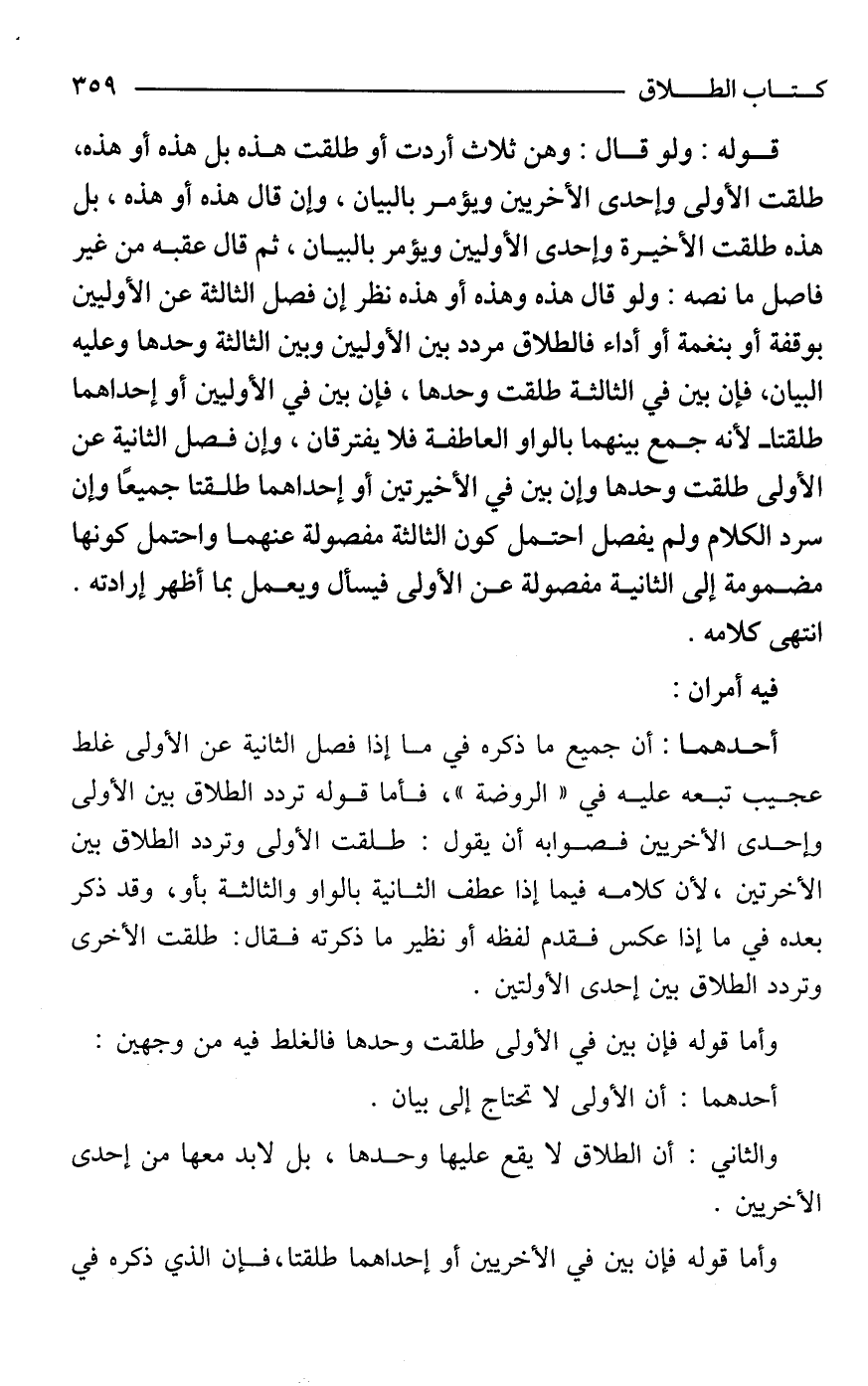قوله: ولو قال: وهن ثلاث أردت أو طلقت هذه بل هذه أو هذه، طلقت الأولى وإحدى الأخريين ويؤمر بالبيان، وإن قال هذه أو هذه، بل هذه طلقت الأخيرة وإحدى الأوليين ويؤمر بالبيان، ثم قال عقبه من غير فاصل ما نصه: ولو قال هذه وهذه أو هذه نظر إن فصل الثالثة عن الأوليين بوقفة أو بنغمة أو أداء فالطلاق مردد بين الأوليين وبين الثالثة وحدها وعليه البيان، فإن بين في الثالثة طلقت وحدها، فإن بين في الأوليين أو إحداهما طلقتا -لأنه جمع بينهما بالواو العاطفة فلا يفترقان، وإن فصل الثانية عن الأولى طلقت وحدها وإن بين في الأخيرتين أو إحداهما طلقتا جميعًا وإن سرد الكلام ولم يفصل احتمل كون الثالثة مفصولة عنهما واحتمل كونها مضمومة إلى الثانية مفصولة عن الأولى فيسأل ويعمل بما أظهر إرادته. انتهى كلامه.
