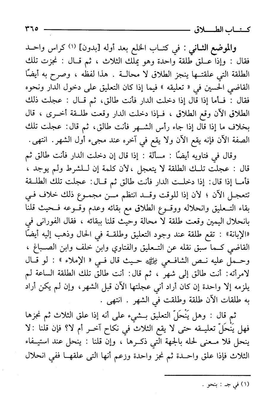 والموضع الثاني: في كتاب الخلع بعد أوله [بدون] (¬1) كراس واحد فقال: وإذا علق طلقة واحدة وهو يملك الثلاث، ثم قال: نجزت تلك الطلقة التي علقتها ينجز الطلاق لا محالة. هذا لفظه، وصرح به أيضًا القاضي الحسين في "تعليقه" فيما إذا كان التعليق على دخول الدار ونحوه فقال: فأما إذا قال إذا دخلت الدار فأنت طالق، ثم قال: عجلت ذلك الطلاق الآن وقع الطلاق، فإذا دخلت الدار وقعت طلقة أخرى، قال بخلاف ما إذا قال إذا جاء رأس الشهر فأنت طالق، ثم قال: عجلت تلك الصفة الآن فإنه يقع الآن ولا يقع في آخره عند مجئ أول الشهر. انتهى.