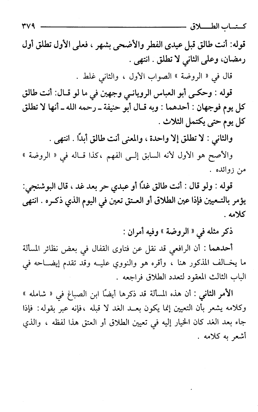 أحدهما: أن الرافعي قد نقل عن فتاوى القفال في بعض نظائر المسألة ما يخالف المذكور هنا، وأقره هو والنووي عليه وقد تقدم إيضاحه في الباب الثالث المعقود لتعدد الطلاق فراجعه.