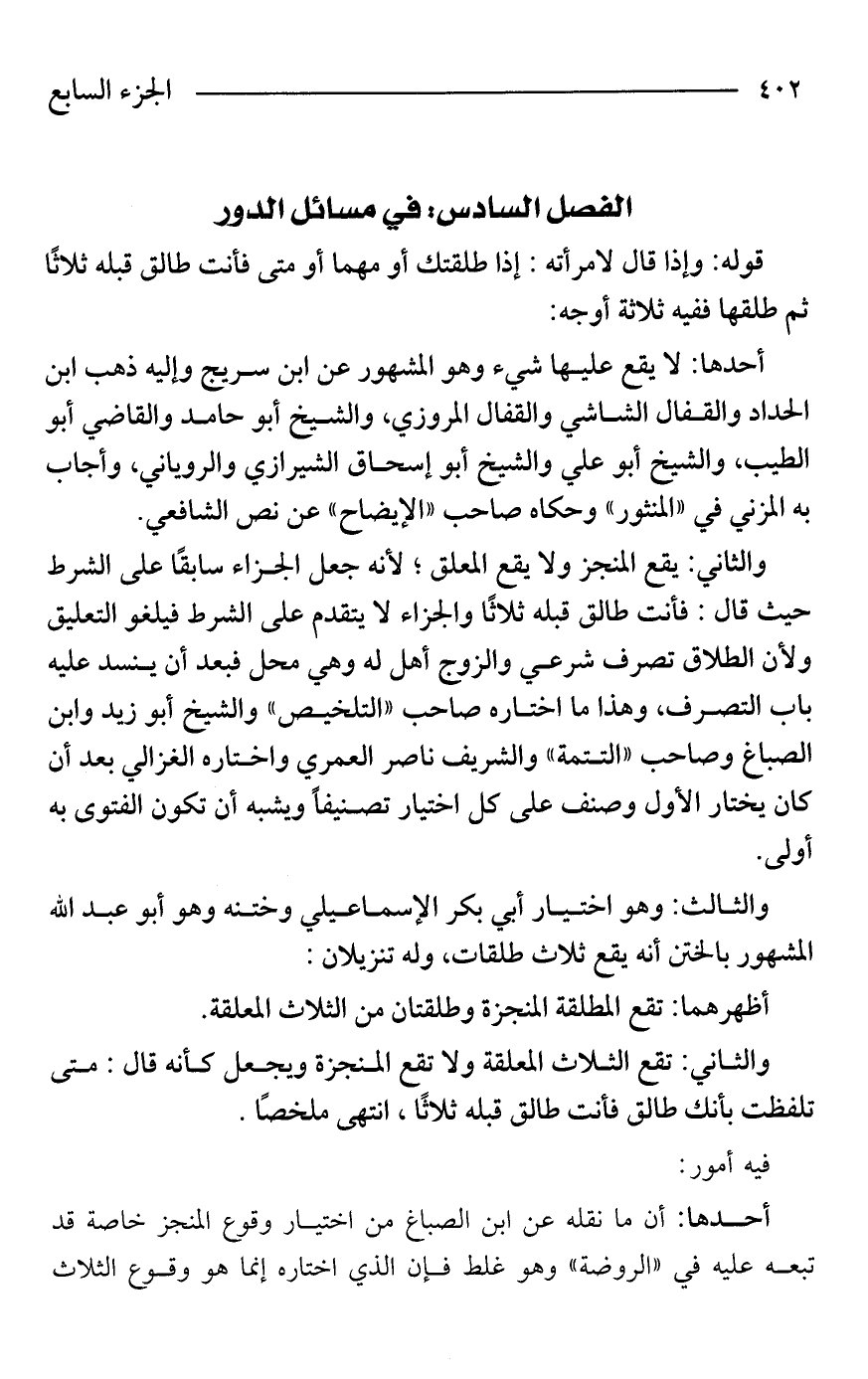الفصل السادس في مسائل الدور