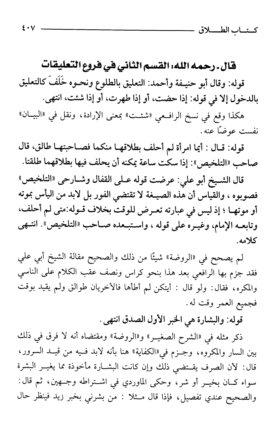 قال -رحمه الله-: القسم الثاني في فروع التعليقات