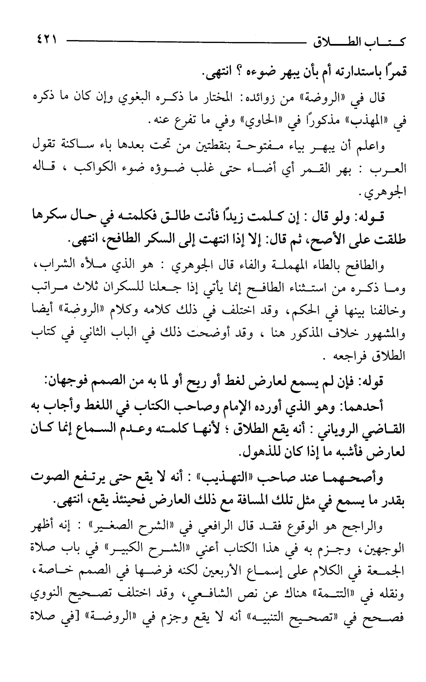 قوله: ولو قال: إن كلمت زيدًا فأنت طالق فكلمته في حال سكرها طلقت على الأصح، ثم قال: إلا إذا انتهت إلى السكر الطافح، انتهى.