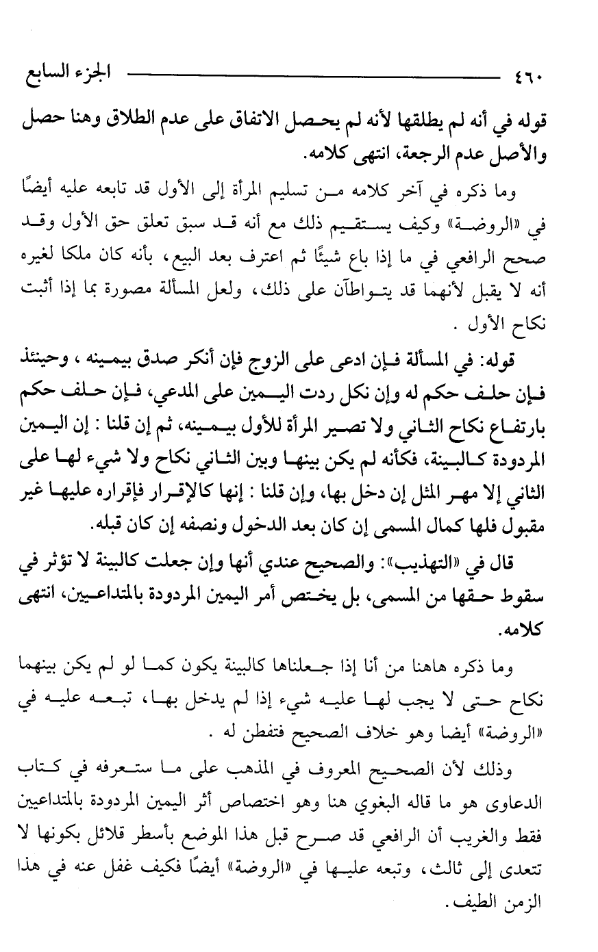 وذلك لأن الصحيح المعروف في المذهب على ما ستعرفه في كتاب الدعاوى هو ما قاله البغوي هنا وهو اختصاص أثر اليمين المردودة بالمتداعيين فقط والغريب أن الرافعي قد صرح قبل هذا الموضع بأسطر قلائل بكونها لا تتعدى إلى ثالث، وتبعه عليها في "الروضة" أيضًا فكيف غفل عنه في هذا الزمن اللطيف.