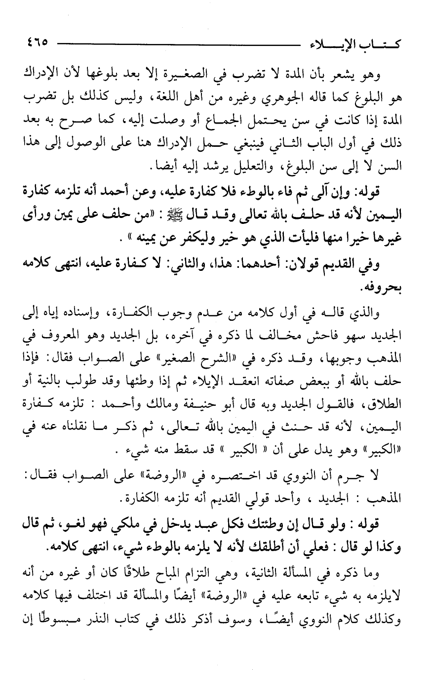 والذي قاله في أول كلامه من عدم وجوب الكفارة، وإسناده إياه إلى الجديد سهو فاحش مخالف لما ذكره في آخره، بل الجديد وهو المعروف في المذهب وجوبها، وقد ذكره في "الشرح الصغير" على الصواب فقال: فإذا حلف بالله أو ببعض صفاته انعقد الإيلاء ثم إذا وطئها وقد طولب بالنية أو الطلاق، فالقول الجديد وبه قال أبو حنيفة ومالك وأحمد: تلزمه كفارة اليمين، لأنه قد حنث في اليمين بالله تعالى، ثم ذكر ما نقلناه عنه في "الكبير" وهو يدل على أن "الكبير" قد سقط منه شيء.