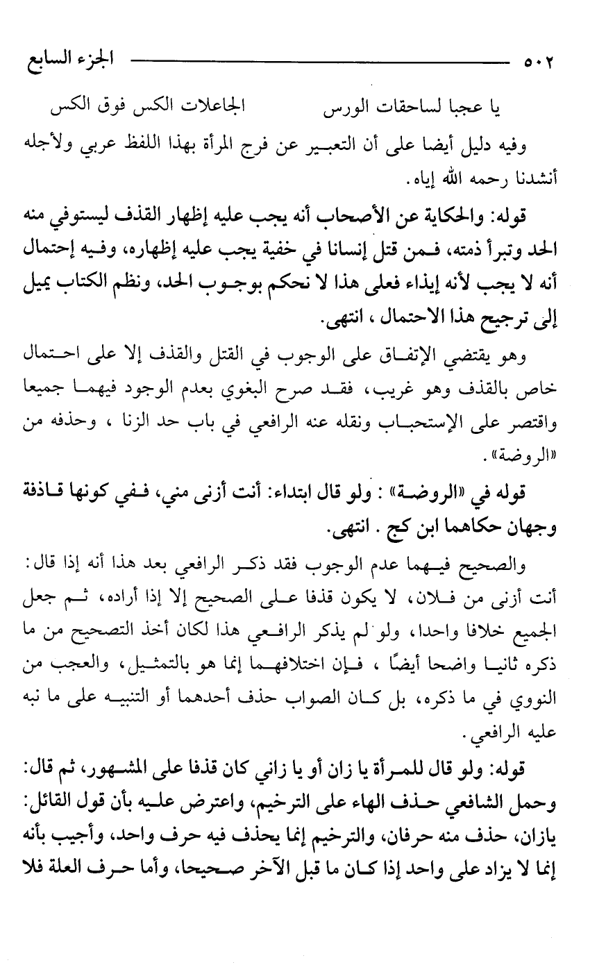 والصحيح فيهما عدم الوجوب فقد ذكر الرافعي بعد هذا أنه إذا قال: أنت أزنى من فلان، لا يكون قذفًا على الصحيح إلا إذا أراده، ثم جعل الجميع خلافًا واحدًا، ولو لم يذكر الرافعي هذا لكان أخذ التصحيح من ما ذكره ثانيًا واضحًا أيضًا، فإن اختلافهما إنما هو بالتمثيل، والعجب من النووي في ما ذكره، بل كان الصواب حذف أحدهما أو التنبيه على ما نبه عليه الرافعي.