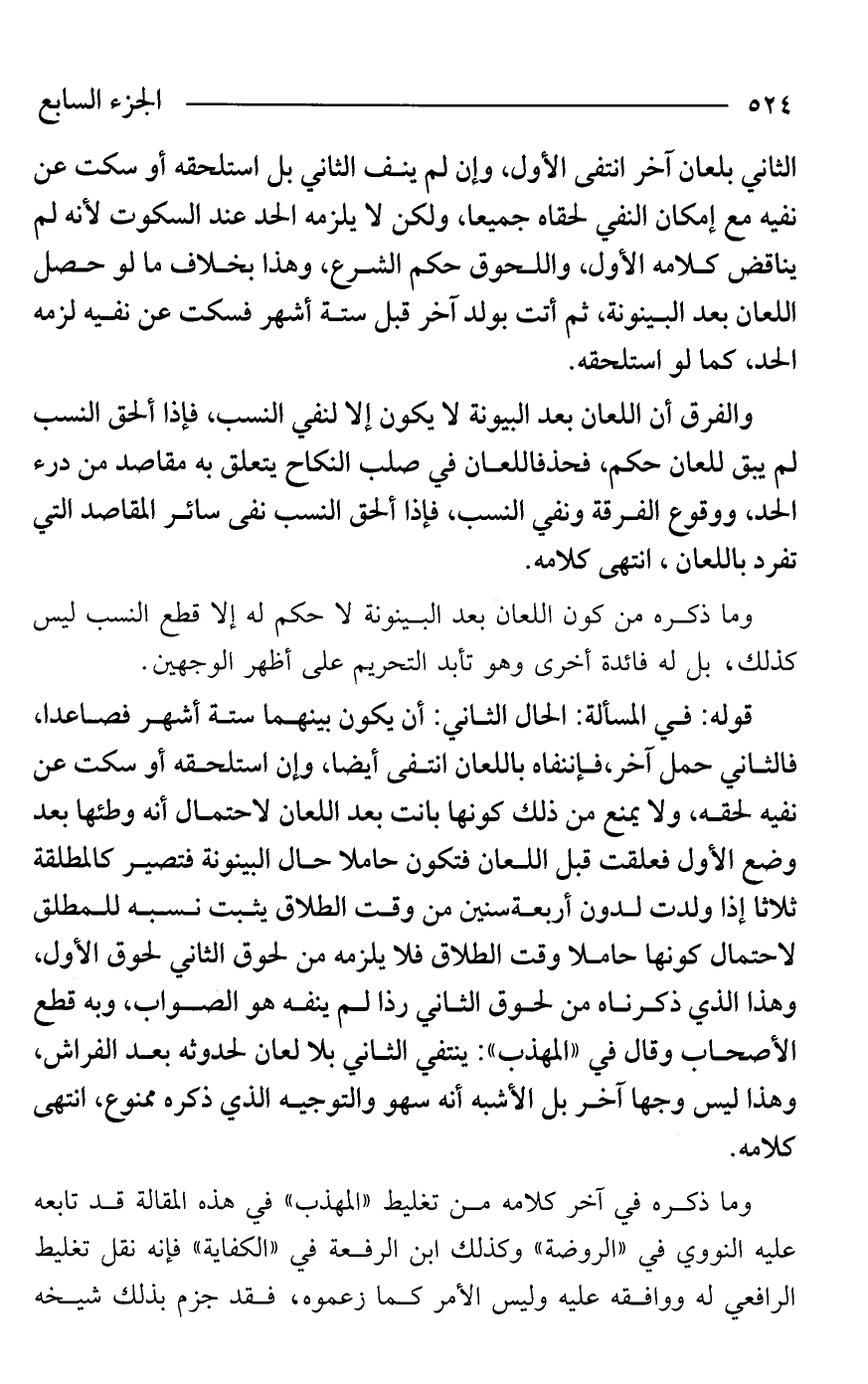 قوله: في المسألة: الحال الثاني: أن يكون بينهما ستة أشهر فصاعدًا، فالثاني حمل آخر، [فإن نفاه] باللعان انتفى أيضًا، وإن استلحقه أو سكت عن نفيه لحقه، ولا يمنع من ذلك كونها بانت بعد اللعان لاحتمال أنه وطئها بعد وضع الأول فعلقت قبل اللعان فتكون حاملًا حال البينونة فتصير كالمطلقة ثلاثًا إذا ولدت لدون أربعة سنين من وقت الطلاق يثبت نسبه للمطلق لاحتمال كونها حاملًا وقت الطلاق فلا يلزمه من لحوق الثاني لحوق الأول، وهذا الذي ذكرناه من لحوق الثاني [إذا] لم ينفه هو الصواب، وبه قطع الأصحاب وقال في "المهذب": ينتفي الثاني بلا لعان لحدوثه بعد الفراش، وهذا ليس وجهًا آخر بل الأشبه أنه سهو والتوجيه الذي ذكره ممنوع، انتهى كلامه.