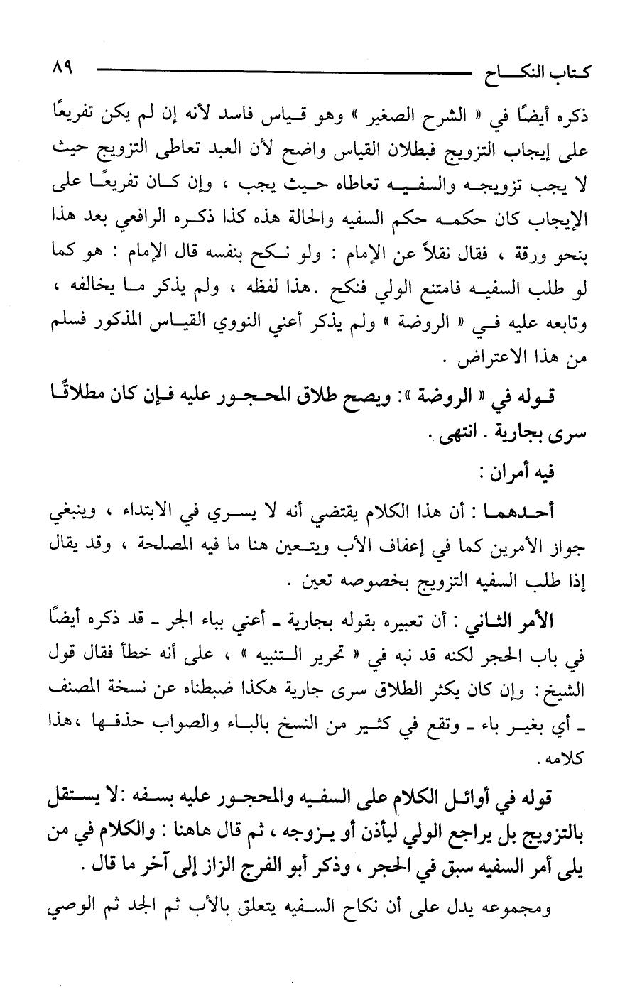 ومجموعه يدل على أن نكاح السفيه يتعلق بالأب ثم الجد ثم الوصي