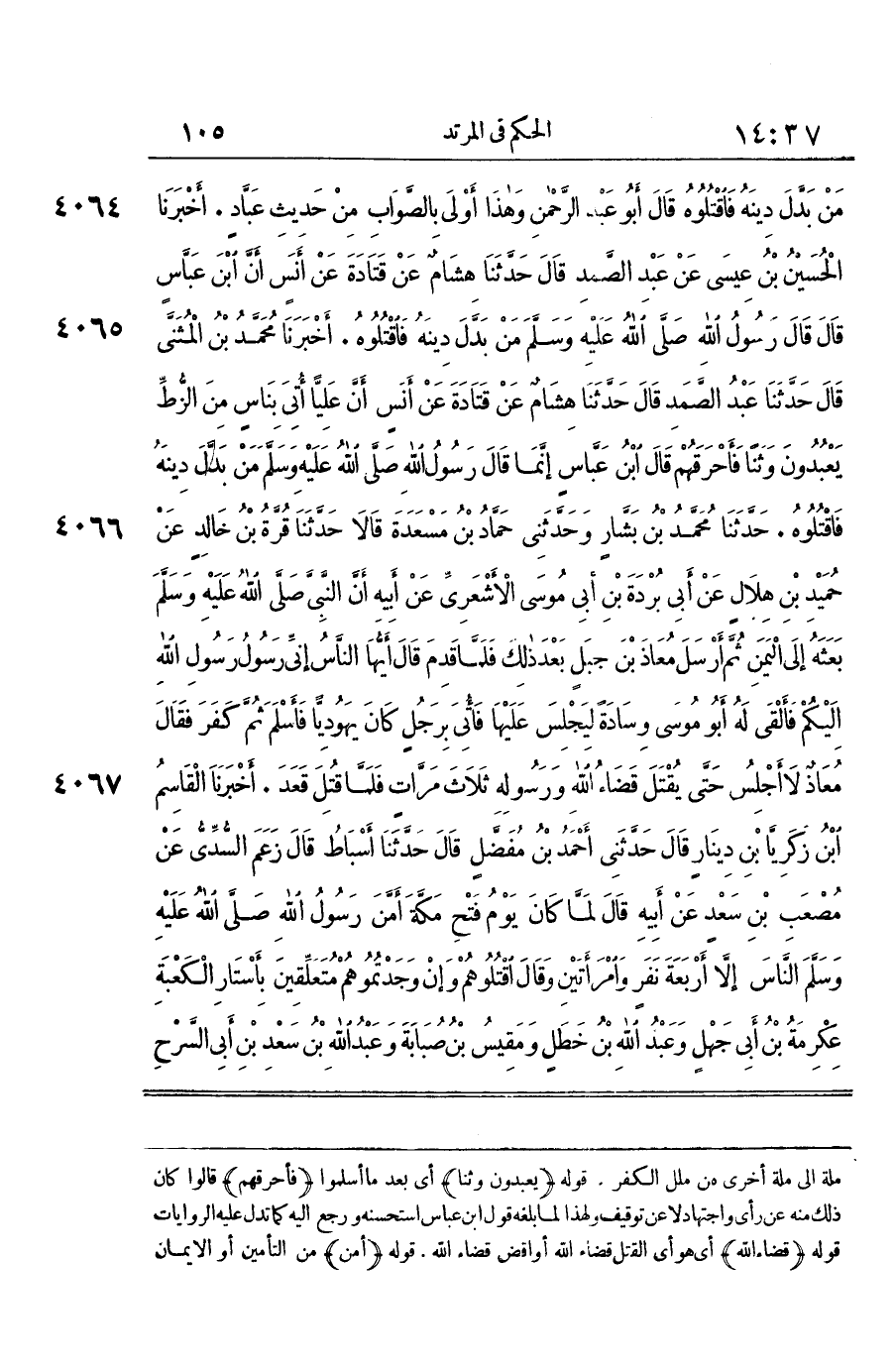 [4065] يعْبدُونَ وثنا أَي بعد مَا أَسْلمُوا فأحرقهم قَالُوا كَانَ ذَلِك مِنْهُ عَن رأى واجتهاد لَا عَن تَوْقِيف وَلِهَذَا لما بلغه قَول بن عَبَّاس استحسنه وَرجع إِلَيْهِ كَمَا تدل عَلَيْهِ الرِّوَايَات
