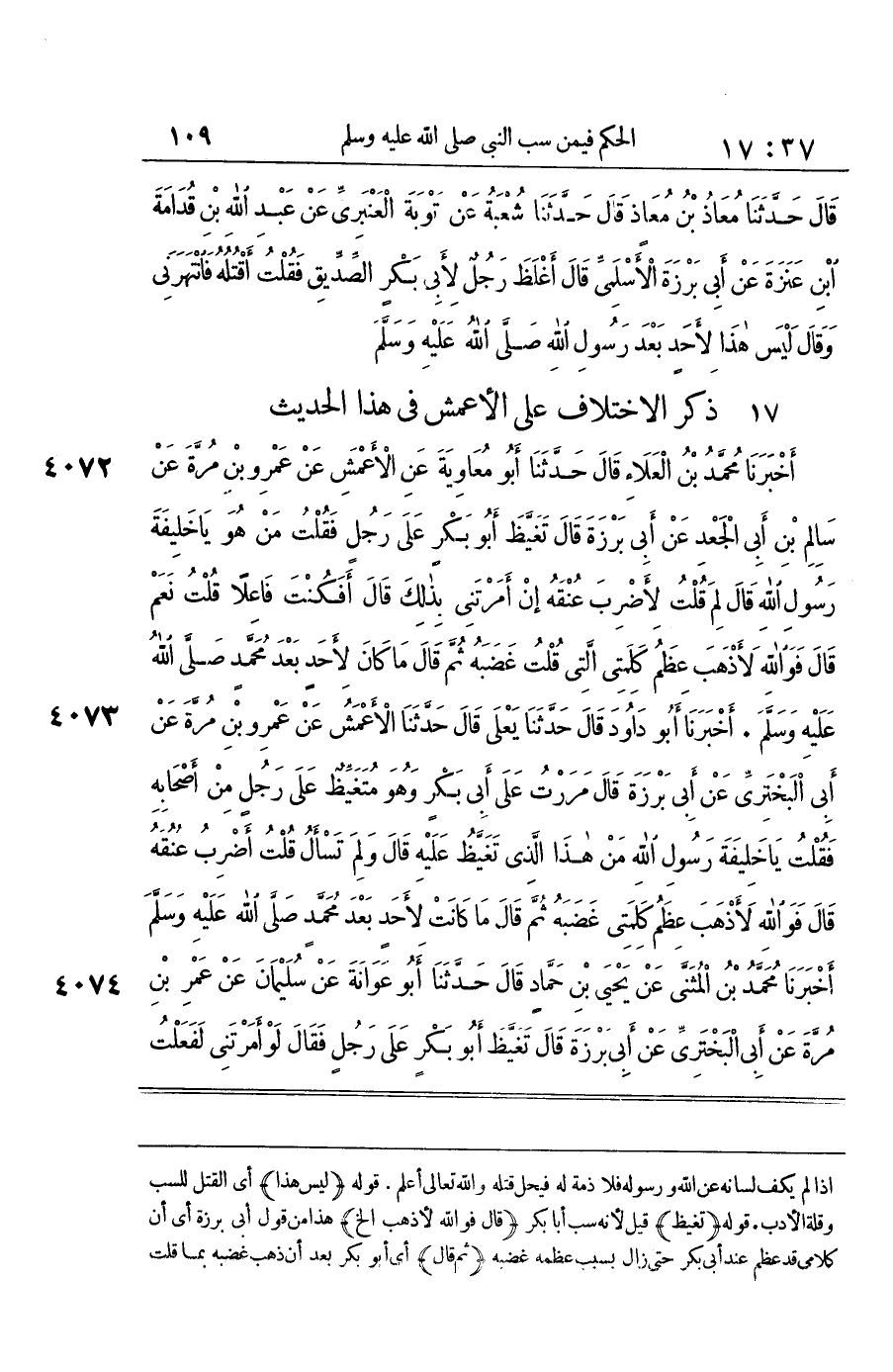 [4071] لَيْسَ هَذَا أَي الْقَتْل للسب وَقلة الْأَدَب قَوْله تغيظ قيل لِأَنَّهُ سبّ أَبَا بكر قَالَ فوَاللَّه لأذهب الخ هَذَا من قَول أبي بَرزَة أَي أَن كَلَامي قد عظم عِنْد أبي بكر حَتَّى زَالَ بِسَبَب عظمه غَضَبه ثمَّ قَالَ أَي أَبُو بكر بعد أَن ذهب غَضَبه بِمَا قلت قَوْله