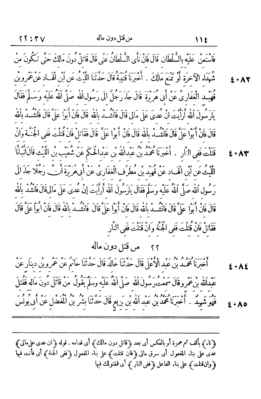 [4082] ان عدي على مَالِي عدي على بِنَاء الْمَفْعُول أَي سرق مَالِي فان قتلت على بِنَاء الْمَفْعُول فَفِي الْجنَّة أَي فَأَنت فِيهَا وان قتلت على بِنَاء الْفَاعِل فَفِي النَّار أَي فمقتولك فِيهَا قَوْله