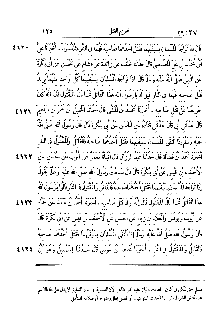 مُسلم لقَوْله إِذا تواجه المسلمان فسماهما الْمُسلمين مَعَ كَونهمَا مباشرين بالذنب وَهَذَا الَّذِي قَالُوا ان مرتكب الْكَبِيرَة مُسلم حق لَكِن فِي كَون الحَدِيث دَلِيلا عَلَيْهِ نظر ظَاهر لِأَن التَّسْمِيَة فِي حيّز التَّعْلِيق لَا يدل على بَقَاء الِاسْم عِنْد تحقق الشَّرْط مثل إِذا أحدث الْمُتَوَضِّئ أَو الْمُصَلِّي بَطل وضوءه أَو صلَاته فَلْيتَأَمَّل
