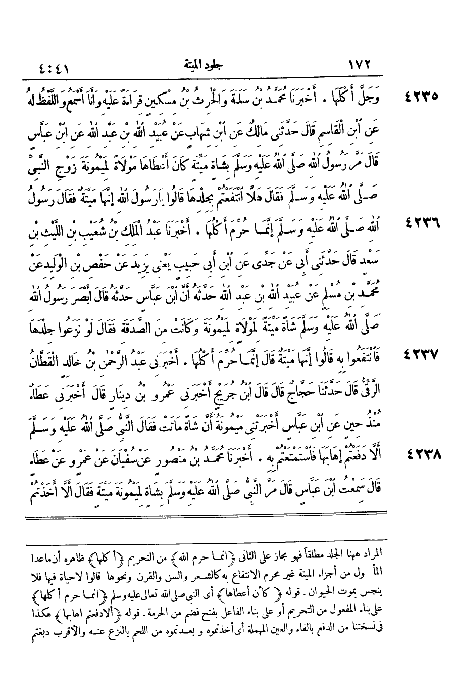 المُرَاد هَا هُنَا الْجلد مُطلقًا فَهُوَ مجَاز على الثَّانِي إِنَّمَا حرم الله من التَّحْرِيم أكلهَا ظَاهره أَن مَا عدا ألماكول من أَجزَاء الْميتَة غير محرم الِانْتِفَاع بِهِ كالشعر وَالسّن والقرن وَنَحْوهَا قَالُوا لَا حَيَاة فِيهَا فَلَا ينجس بِمَوْت الْحَيَوَان قَوْله كَأَن أَعْطَاهَا أَي النَّبِي صلى الله تَعَالَى عَلَيْهِ وَسلم إِنَّمَا حرم أكلهَا لى بِنَاء الْمَفْعُول من التَّحْرِيم أَو على بِنَاء الْفَاعِل بِفَتْح فضم من الْحُرْمَة قَوْله أَلا دفعتم إهابها هَكَذَا فِي نسختنا من الدّفع بِالْفَاءِ وَالْعين الْمُهْملَة أَي أخذتموه وبعدتموه من اللَّحْم بالنزع عَنهُ وَالْأَقْرَب دبغتم