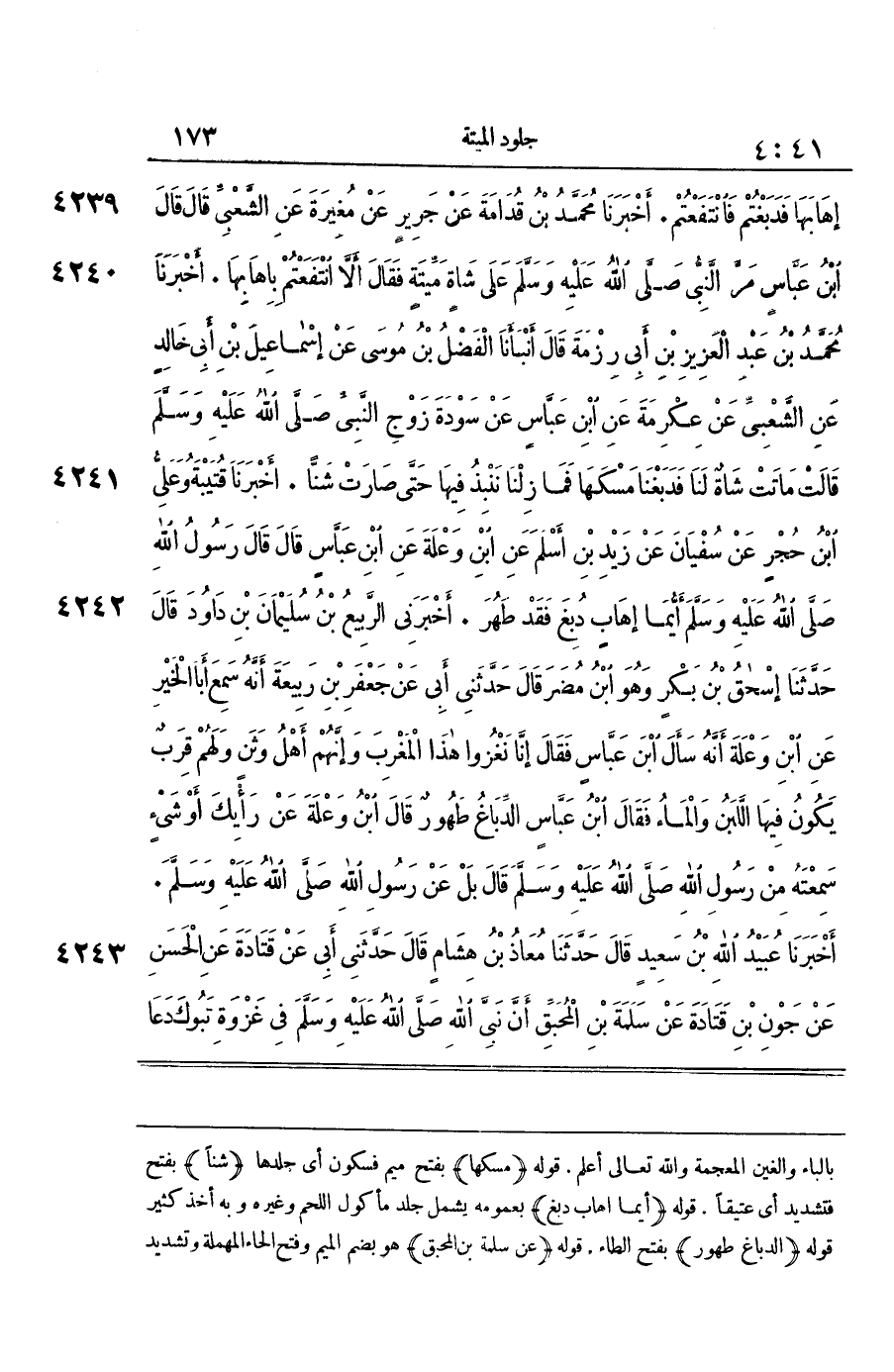 [4241] أَيّمَا اهاب دبغ بِعُمُومِهِ يَشْمَل جلد مَأْكُول اللَّحْم وَغَيره وَبِه أَخذ كثير قَوْله