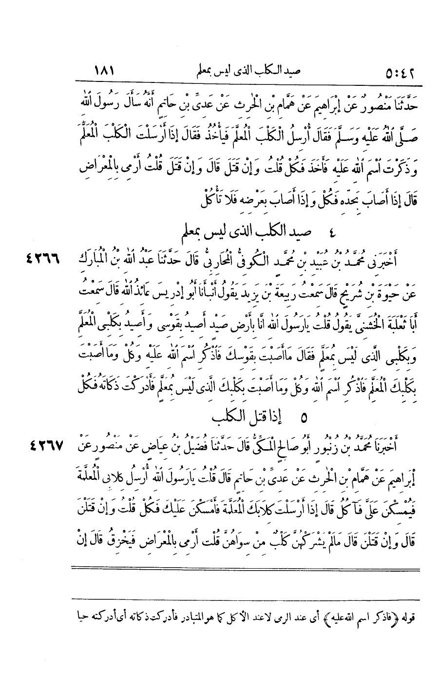 [4266] فاذكر اسْم الله عَلَيْهِ أَي عِنْد الرَّمْي لَا عِنْد الْأكل كَمَا هُوَ الْمُتَبَادر فأدركت ذَكَاته أَي أَدْرَكته حَيا
