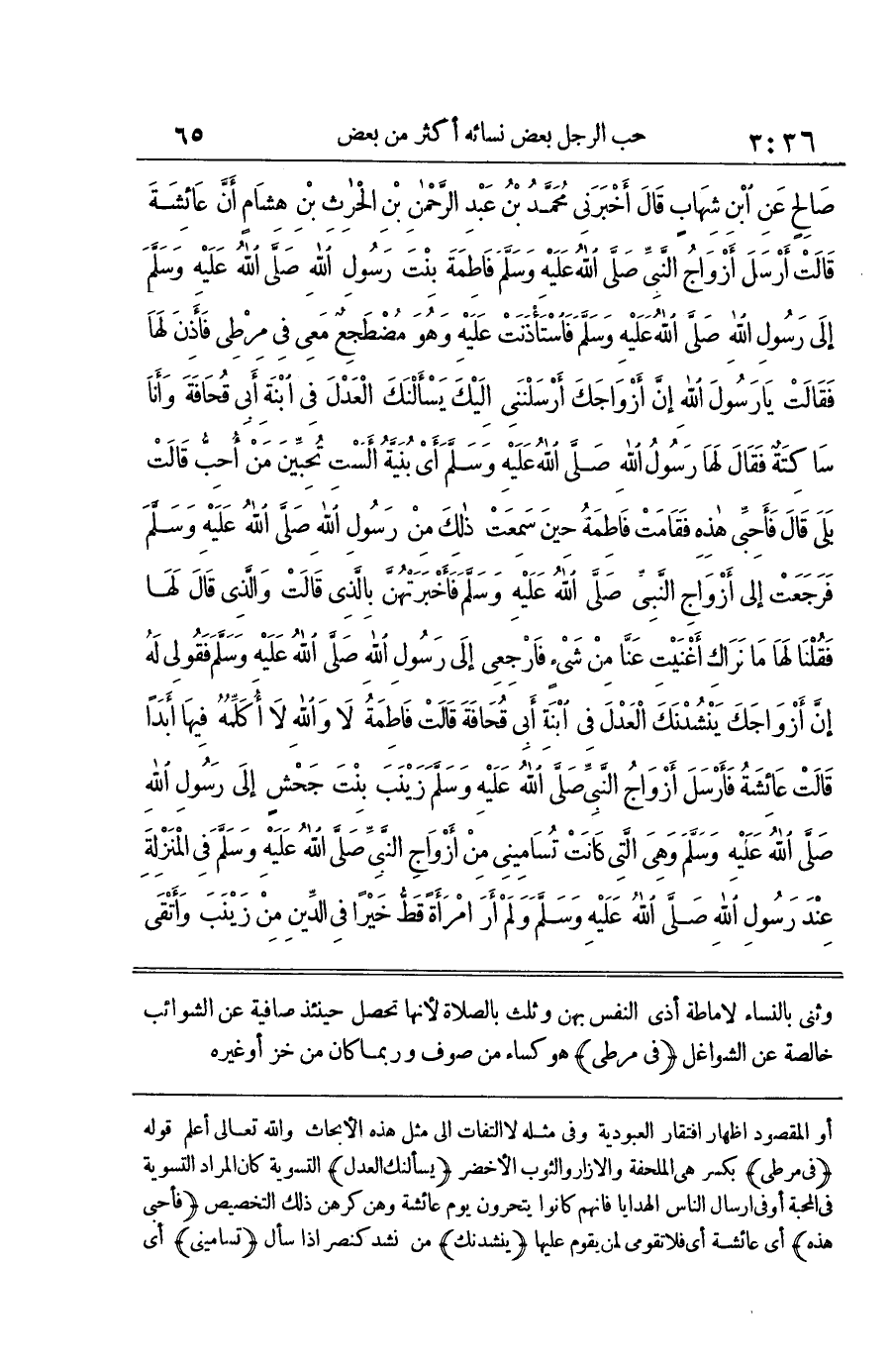 [3944] فِي مِرْطِي هُوَ كِسَاءٌ مِنْ صُوفٍ وَرُبَّمَا كَانَ مِنْ خَزٍّ أَوْ غَيْرِهِ مَا عَدَا سَوْرَةً مِنْ حِدَّةٍ أَيْ سَوْرَةٌ تُسْرِعُ مِنْهَا الفيأة أَيْ الرُّجُوعَ لَمْ أَنْشَبْهَا أَيْ لَمْ أُمْهِلْهَا حَتَّى أَنْحَيْتُ عَلَيْهَا قالَ فِي النِّهَايَةِ هَكَذَا جَاءَ فِي رِوَايَةٍ بِالنُّونِ وَالْحَاءِ الْمُهْمَلَةِ بَعْدَهَا مُثَنَّاةٌ تَحْتِيَّةٌ أَيِ اعْتَمَدْتُهَا بِالْكَلَامِ وَقَصَدْتُهَا وَالْمَشْهُورُ بِالثَّاءِ الْمُثَلَّثَةِ وَالْخَاءِ الْمُعْجَمَةِ وَالنُّونِ أَيْ قَطَعْتُهَا وَقَهَرْتُهَا