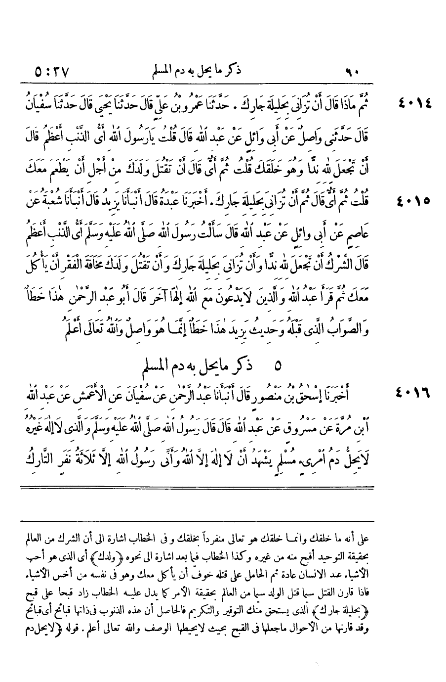 على أَنه مَا خلقك وَإِنَّمَا خلقك هُوَ تَعَالَى مُنْفَردا بخلقك وَفِي الْخطاب إِشَارَة إِلَى أَن الشّرك من الْعَالم بِحَقِيقَة التَّوْحِيد أقبح مِنْهُ من غَيره وَكَذَا الْخطاب فِيمَا بعد إِشَارَة إِلَى نَحوه ولدك أَي الَّذِي هُوَ أحب الْأَشْيَاء عِنْد الْإِنْسَان عَادَة ثمَّ الْحَامِل على قَتله خوف أَن يَأْكُل مَعَك وَهُوَ فِي نَفسه من أخس الْأَشْيَاء فَإِذا قَارن الْقَتْل سِيمَا قتل الْوَلَد سِيمَا من الْعَالم بِحَقِيقَة الْأَمر كَمَا يدل عَلَيْهِ الْخطاب زَاد قبحا على قبح بحليلة جَارك الَّذِي يسْتَحق مِنْك التوقير والتكريم فَالْحَاصِل أَن هَذِه الذُّنُوب فِي ذَاتهَا قبائح أَي قبائح وَقد قارنها من الْأَحْوَال مَا جعلهَا فِي الْقبْح بِحَيْثُ لَا يحيطها الْوَصْف وَالله تَعَالَى أعلم