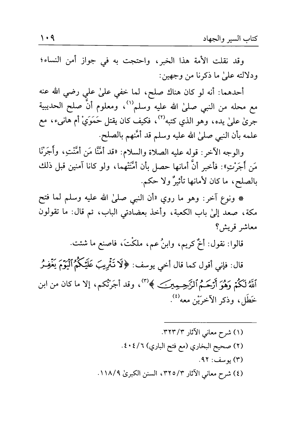 أحدهما: أنه لو كان هناك صلح، لما خفي على رضي الله عنه مع محله من النبي صلى الله عليه وسلم، ومعلوم أن صلح الحديبية جرى على يده، وهو الذي كتبه، فكيف كان يقتل حموي أم هانئ، مع علمه بأن النبي صلى الله عليه وسلم قد أمنهم بالصلح.