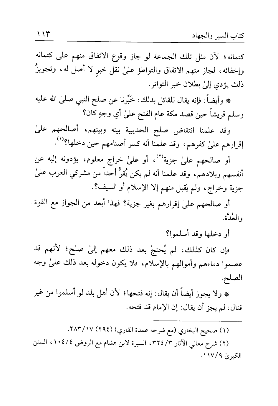 *وأيضا: فإنه يقال للقائل بذلك: خبرنا عن صلح النبي صلى الله عليه وسلم قريشا حين قصد مكة عام الفتح على أي وجه كان؟