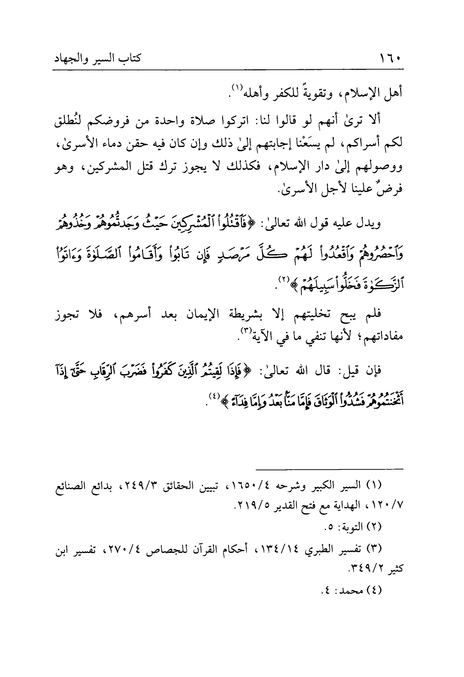 ألا ترى أنهم لو قالوا لنا: اتركوا صلاة واحدة من فروضكم لنطلق لكم أسراكم، لم يسعنا إجابتهم إلى ذلك وإن كان فيه حقن دماء الأسرى، ووصولهم إلى دار الإسلام، فكذلك لا يجوز ترك قتل المشركين، وهو فرض علينا لأجل الأسرى.