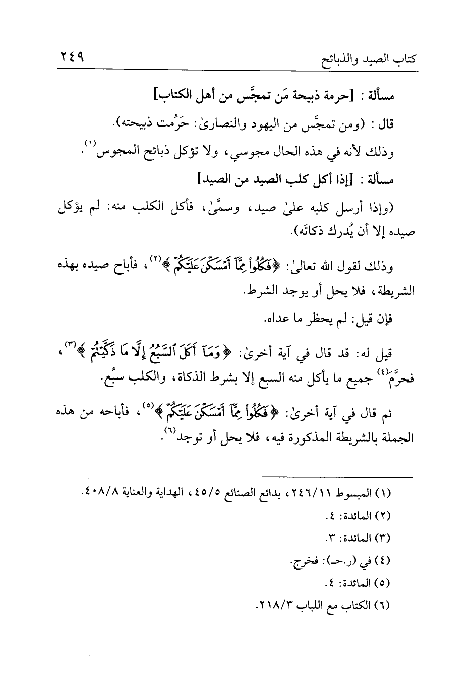 ثم قال في آية أخرى:} فكلوا مما أمسكن عليكم {، فأباحه من هذه الجملة بالشريطة المذكورة فيه، فلا يحل أو توجد.
