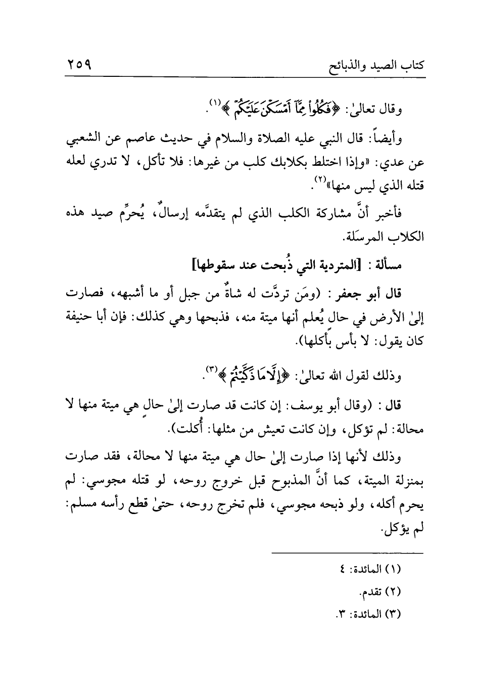 مسألة: [المتردية التي ذُبحت عند سقوطها]