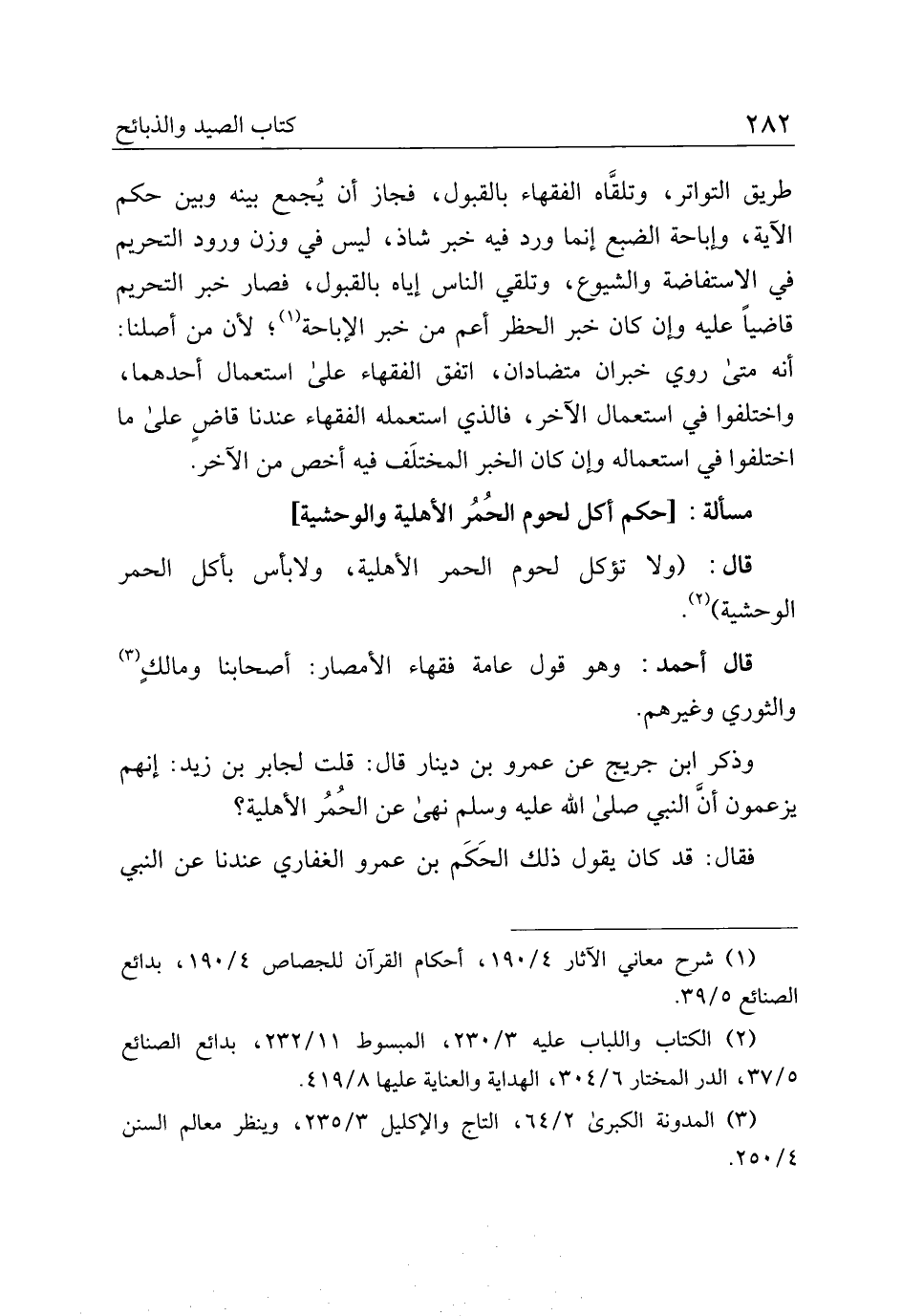 قال: (ولا تؤكل لحوم الحمر الأهلية، ولا بأس بأكل الحمر الوحشية).