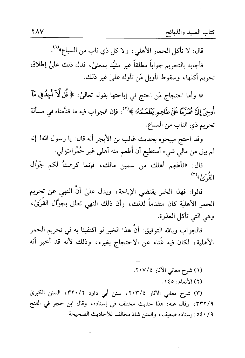 * وأما احتجاج من احتج في إباحتها بقوله تعالى: {قل لا أجد في ما أوحى إليَّ محرمًا على طاعمٍ يطعمه}: فإن الجواب فيه ما قدمناه في مسألة تحريم ذي الناب من السباع.