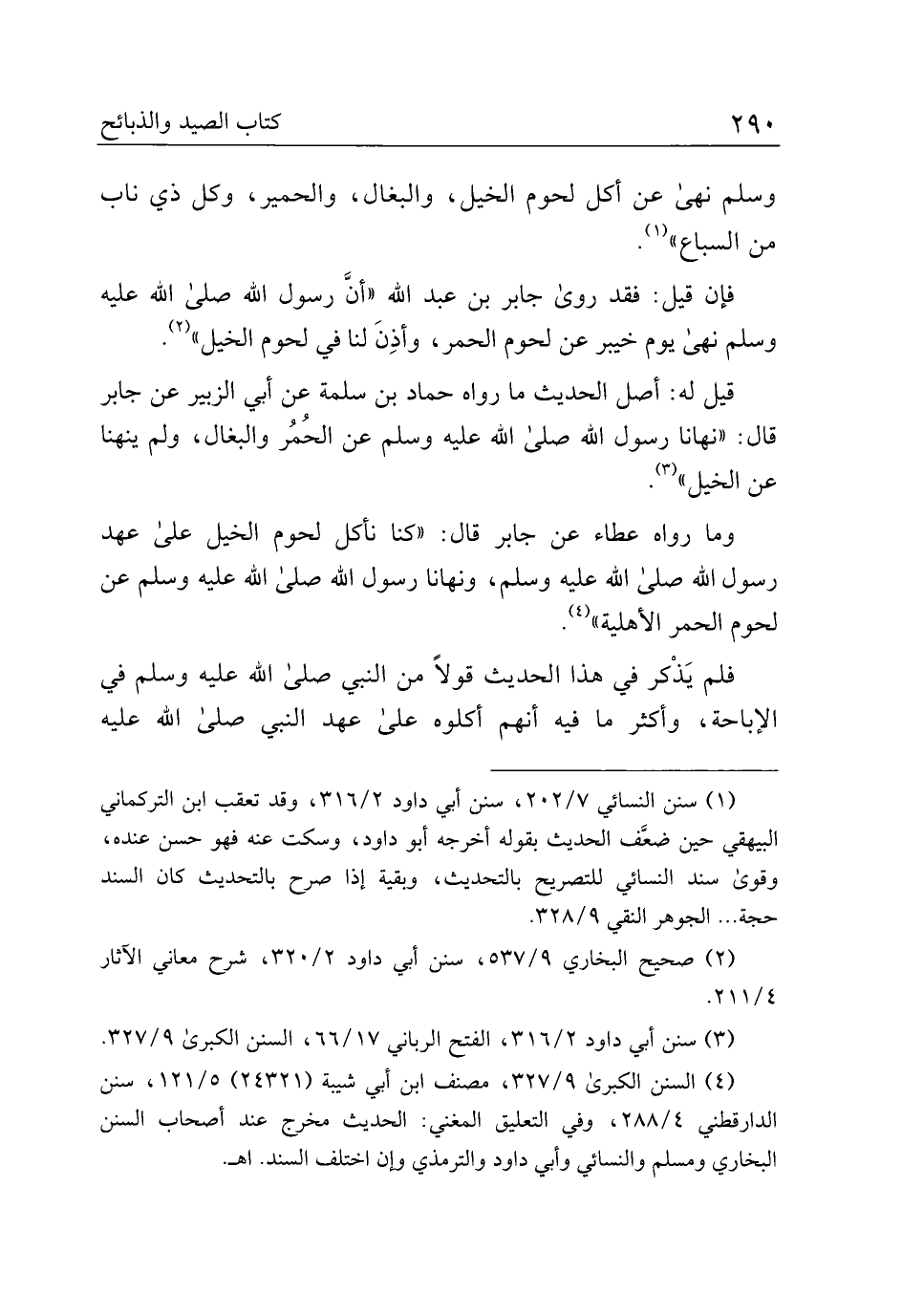 وسلم نهى عن أكل لحوم الخيل، والبغال، والحمير، وكل ذي ناب من السباع".