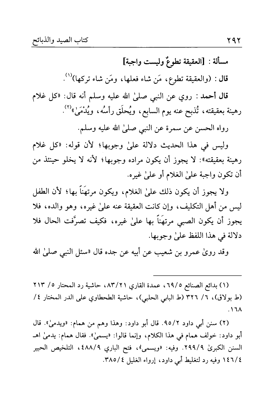 مسألة:] العقيقة تطوعٌ وليست واجبة [