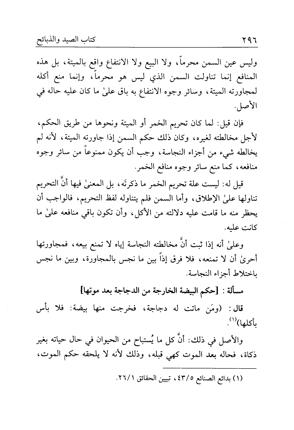مسألة:] حكم البيضة الخارجة من الدجاجة بعد موتها [