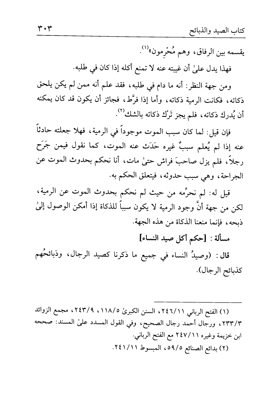 مسألة:] حكم أكل صيد النساء [