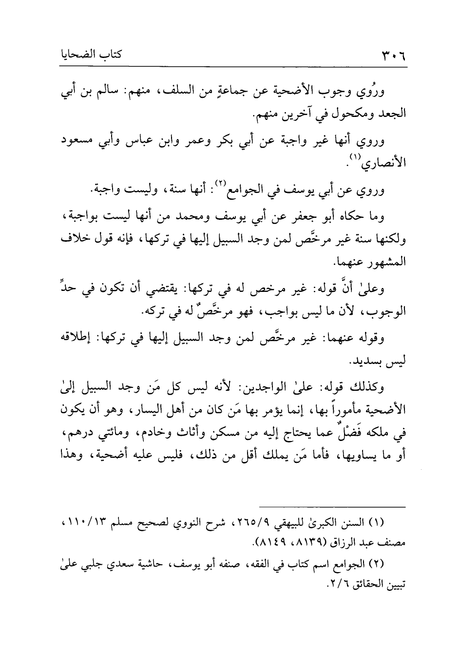 وكذلك قوله: على الواجدين: لأنه ليس كل من وجد السبيل إلى الأضحية مأمورًا بها، إنما يؤمر بها من كان من أهل اليسار، وهو أن يكون في ملكه فضلٌ عما يحتاج إليه من مسكن وأثاث وخادم، ومائتي درهم، أو ما يساويها، فأما من يملك أقل من ذلك، فليس عليه أضحية، وهذا