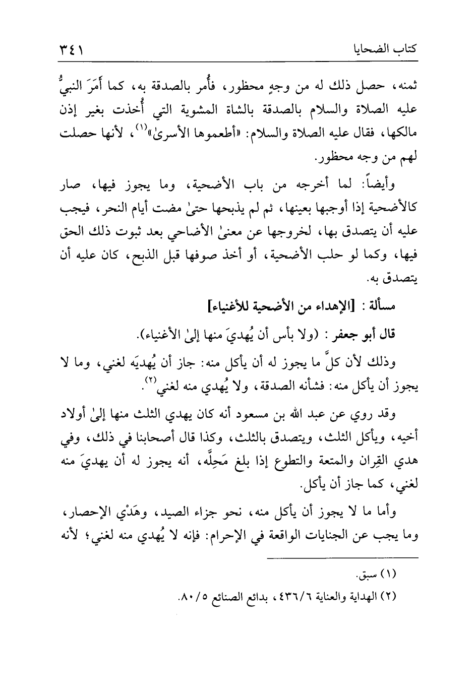 قال أبو جعفر: (ولا بأس أن يهدي منها إلى الأغنياء).