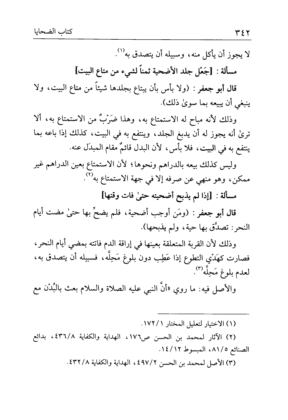 قال أبو جعفر: (ولا بأس بأن يبتاع بجلدها شيئًا من متاع البيت، ولا ينبغي أن يبيعه بما سوى ذلك).
