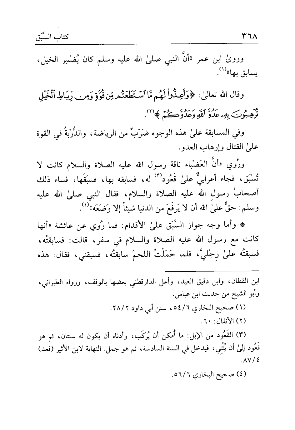 وفي المسابقة على هذه الوجوه ضرب من الرياضة، والدربة في القوة على القتال وإرهاب العدو.