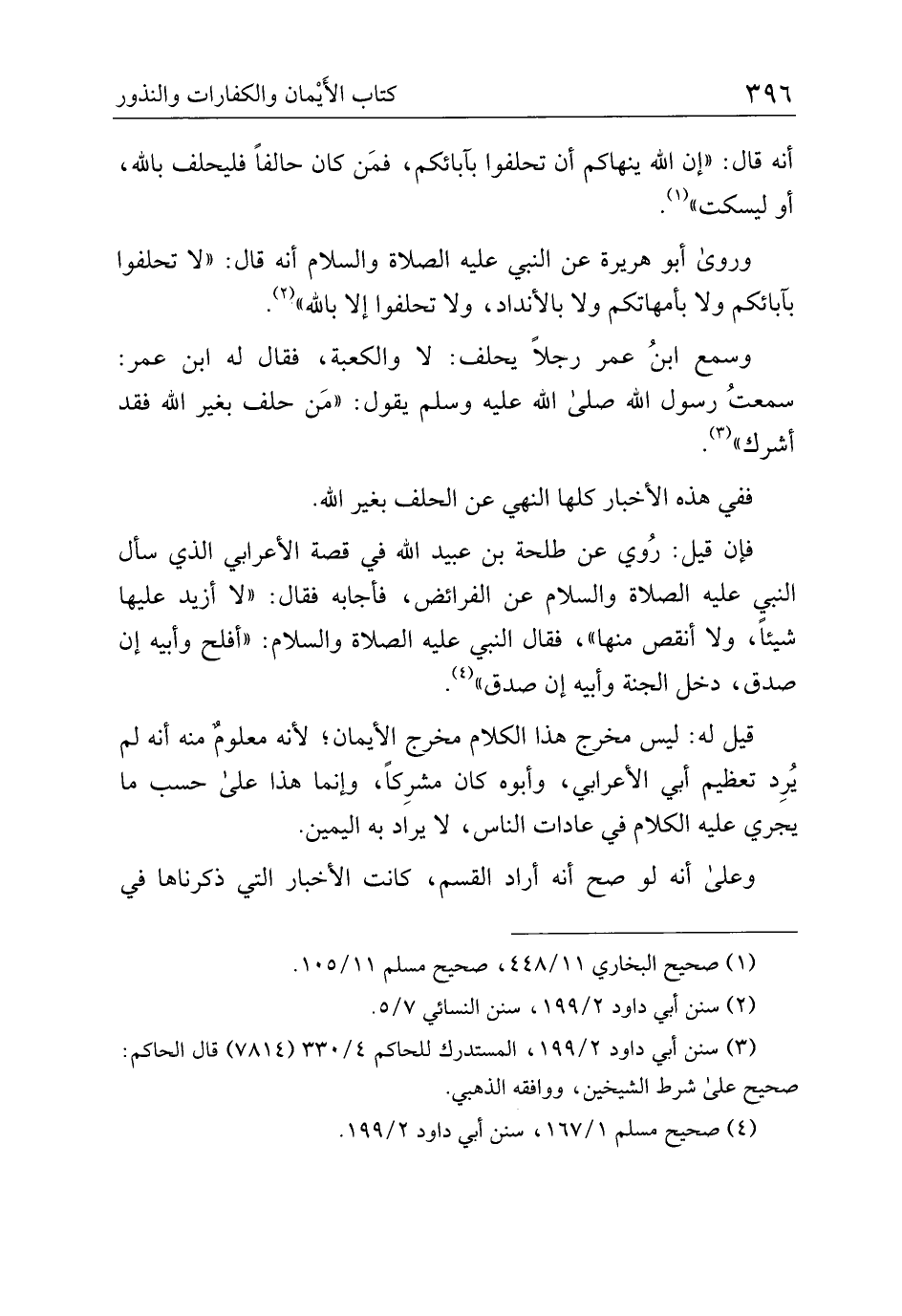 وروى أبو هريرة عن النبي عليه الصلاة والسلام أنه قال: "لا تحلفوا بآبائكم ولا بأمهاتكم ولا بالأنداد، ولا تحلفوا إلا بالله".