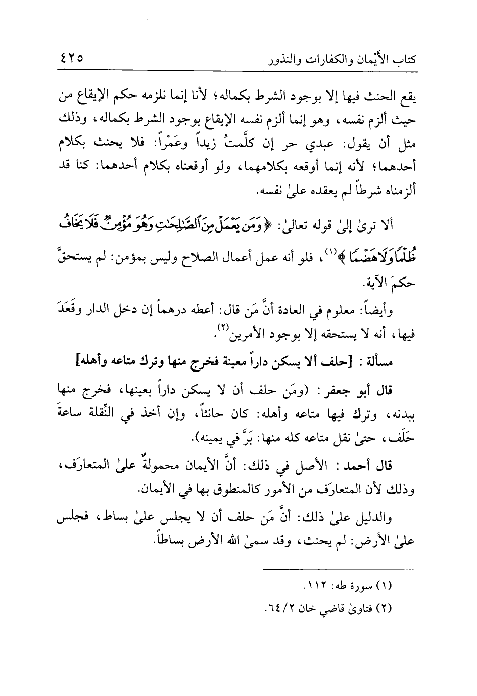 قال أبو جعفر: (ومن حلف أن لا يسكن دارًا بعينها، فخرج منها ببدنه، وترك فيها متاعه وأهله: كان حانثًا، وإن أخذ في النَّقلة ساعة حلف، حتى نقل متاعه كله منها: برَّ في يمينه).