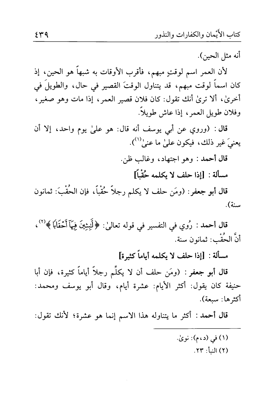 قال أبو جعفر: (ومن حلف لا يكلم رجلاً حُقبًا، فإن الحُقب: ثمانون سنة).