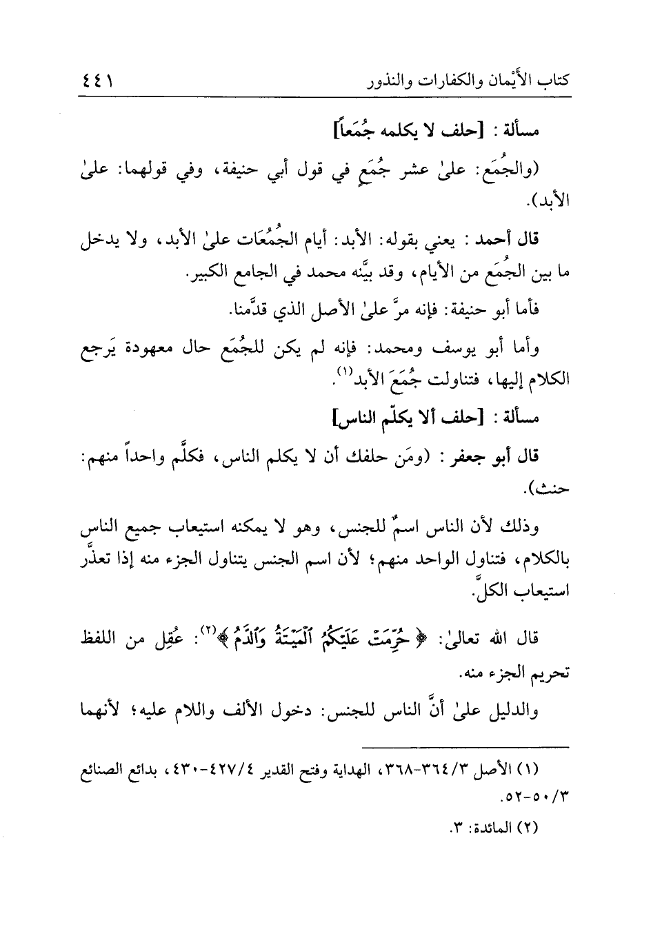 وأما أبو يوسف ومحمد: فإنه لم يكن للجُمع حال معهودة يرجع الكلام إليها، فتناولت جُمع الأبد.