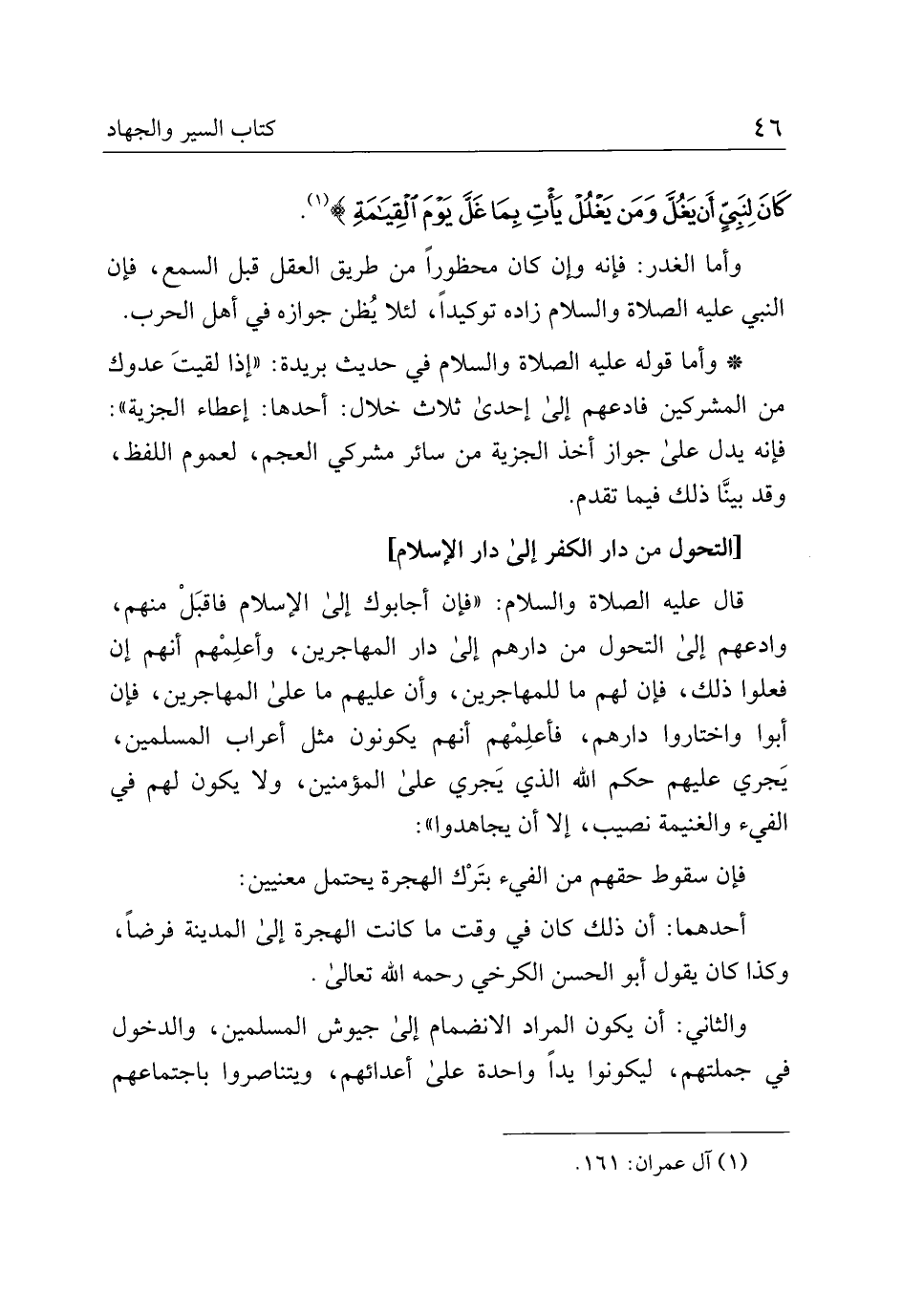 قال عليه الصلاة والسلام: "فإن أجابوك إلى الإسلام فأقبل منهم، وادعهم إلى التحول من دارهم إلى دار المهاجرين، وأعلمهم أنهم إن فعلوا ذلك، فإن لهم ما للمهاجرين، وأن عليهم ما على المهاجرين، فإن أبوا واختاروا دارهم، فأعلمهم أنهم يكونون مثل أعراب المسلمين، يجري عليهم حكم الله الذي يجري على المؤمنين، ولا يكون لهم في القيء والغنيمة نصيب، إلا أن يجاهدوا":