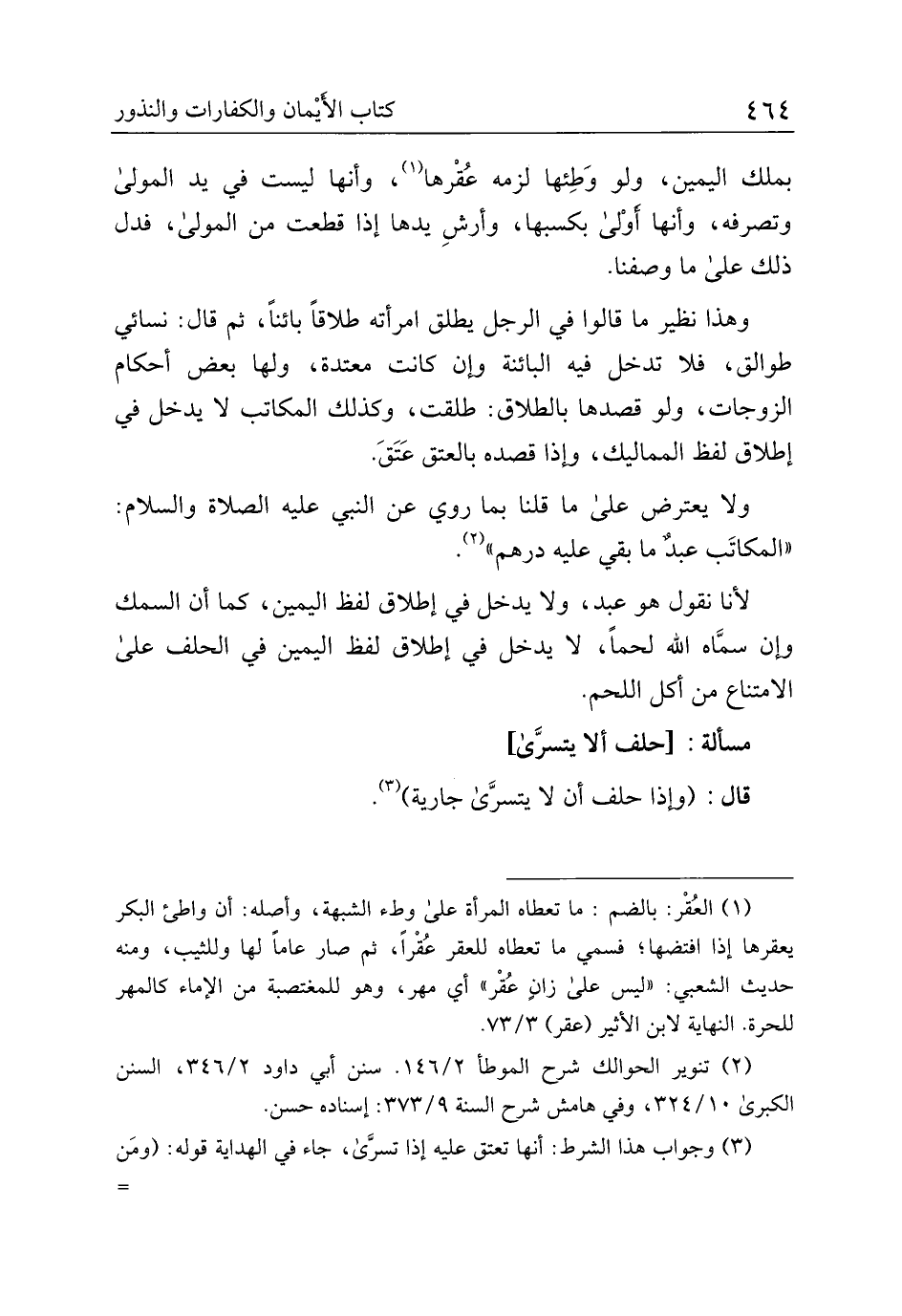 مسألة: [حلف ألا يتسرَّى]