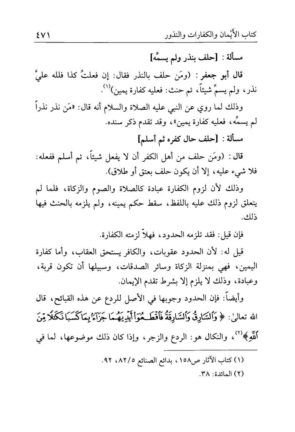 قيل له: لأن الحدود عقوبات، والكافر يستحق العقاب، وأما كفارة اليمين، فهي بمنزلة الزكاة وسائر الصدقات، وسبيلها أن تكون قربة، وعبادة، وذلك لا يلزم إلا بشرط تقدم الإيمان.